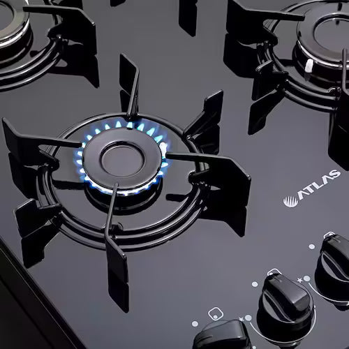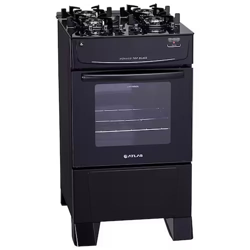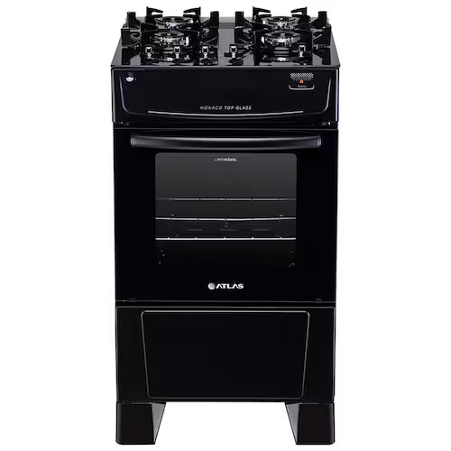 Fogão Atlas 4 Bocas Mônaco Top Glass com Mesa de Vidro e Acendimento Automático Bivolt – Preto